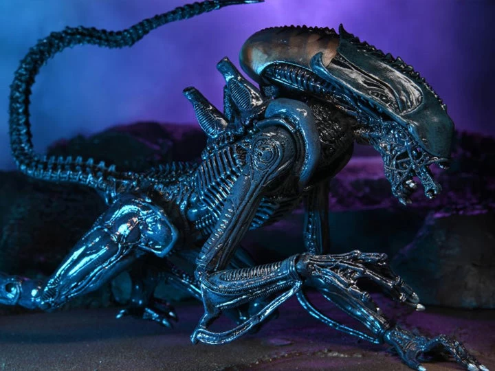 The unique Alien adversaries seen in the video game get the movie treatment, with new deco imagining their look had they been included in the subsequent movie. The figures use the super-poseable Ultimate body, with over 30 points of articulation and bendable tail. Approximately 9″ tall. Window box packaging.