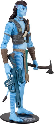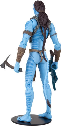 With his full battle gear, rifle, axe and knife, final-battle Jake Sully is ready to leap into action featuring 22 points of articulation, premium sculpt and deco, rifle, knife, and hatchet, collector stand, plus special blacklight-activated bioluminescence.