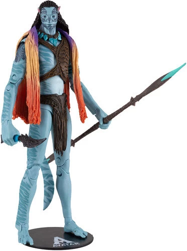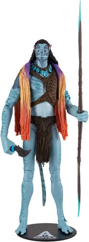 Tonowari, the proud and noble Oloโeyktan of the Metkayina Clan is brought to life in articulated form with this 7-inch action figure featuring 22 points of articulation, premium sculpt and deco, knife and spear, collector stand, plus special blacklight-activated bioluminescence.