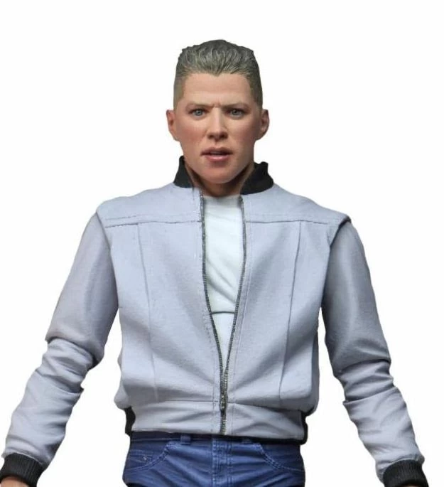 The tough but not too bright antagonist of the Back to the Future franchise, Biff Tannen, bullies his way to the NECA Ultimate line! Dressed in his Enchantment Under the Sea Dance outfit, Ultimate Biff features the licensed likeness of Tom Wilson and comes with interchangeable heads, hands, the Gray’s Sports Almanac and Case from Part 2! Window box packaging.