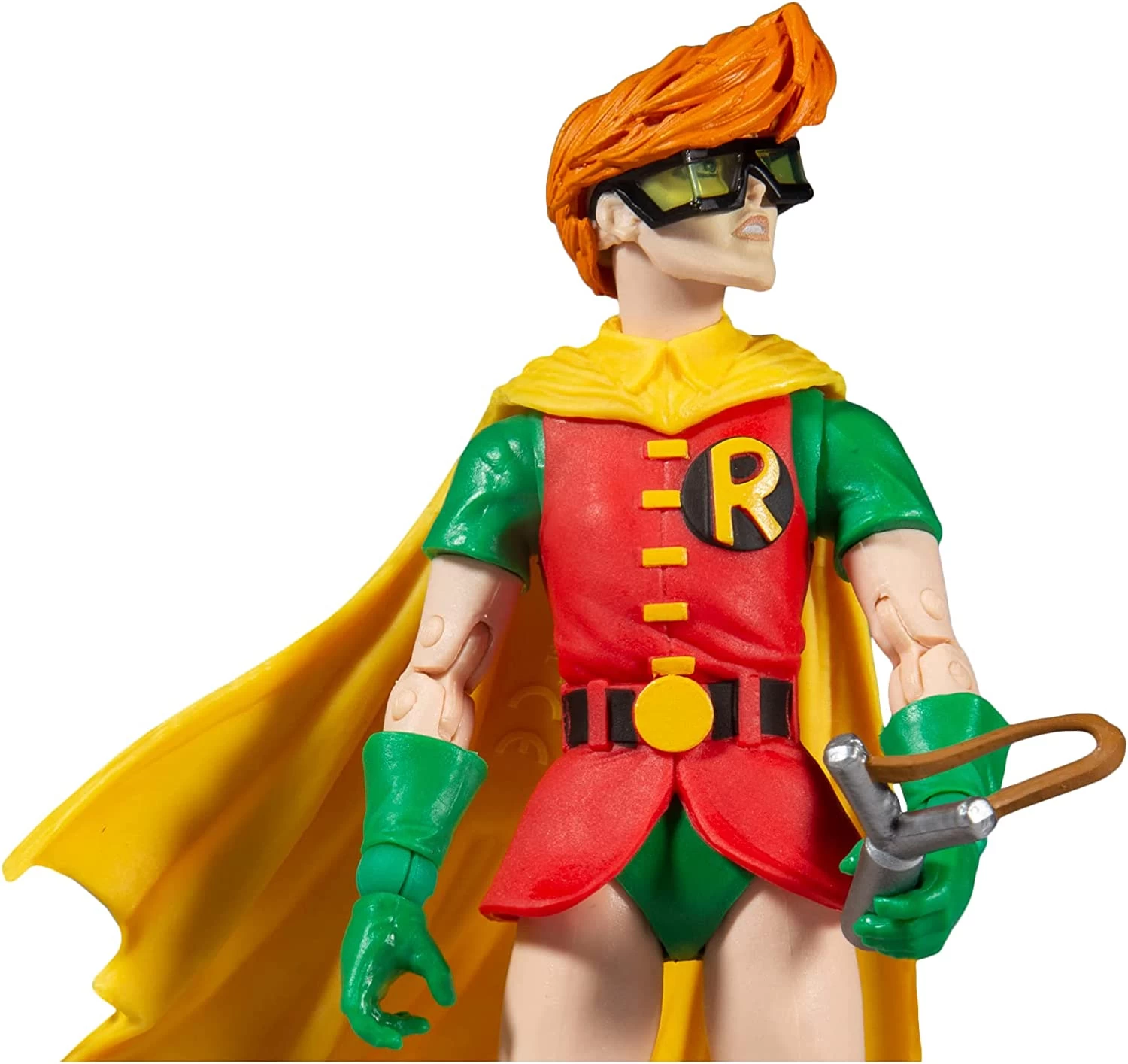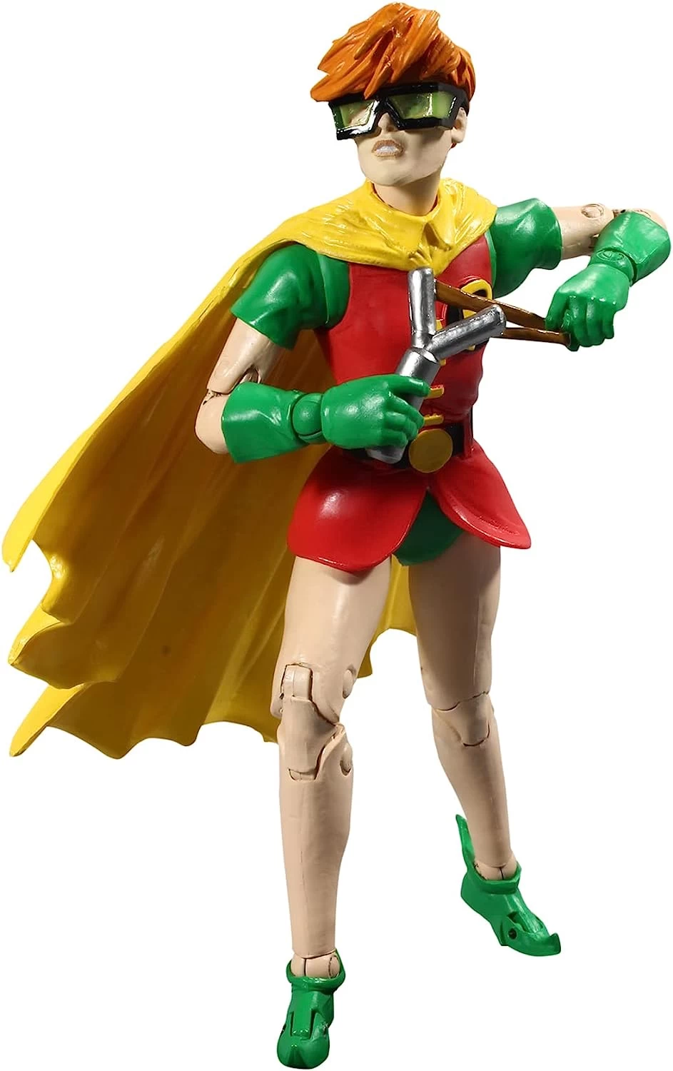 Incredibly detailed 7″ scale figure based off the DC Multiverse. Designed with Ultra Articulation with up to 22 moving parts for full range of posing and play. Robin is based on her look from the DC Comic Dark Knight Returns. Robin Includes a Slingshot and a base. Figure includes 1 of 4 pieces that combine with The Dark Knight Returns Build-a line to assemble the Horse Batman rides into battle from the Dark Knight Returns. Included collectible art card with figure photography on the front, and character biography on the back. Collect all McFarlane Toys DC Multiverse Figures.