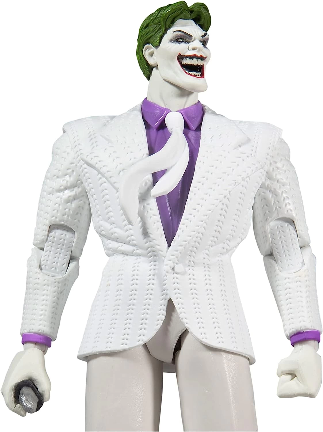 Incredibly detailed 7″ scale figure based off the DC Multiverse. Designed with Ultra Articulation with up to 22 moving parts for full range of posing and play. The Joker is based on his look from the DC Comic Dark Knight Returns. The Joker includes a knife, alternate hand, and a base. Figure includes 1 of 4 pieces that combine with The Dark Knight Returns Build-a line to assemble the Horse Batman rides into battle from the Dark Knight Returns. Included collectible art card with figure photography on the front, and character biography on the back. Collect all McFarlane Toys DC Multiverse Figures.