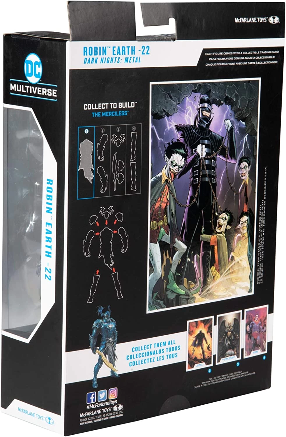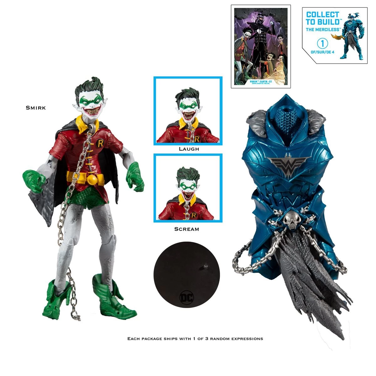 The DC Multiverse Collector Wave 2 Robin Crow 7-Inch Scale Action Figure has 22 points of articulation for full range of posing and play, and feature randomly assorted heads sculpted with 3 unique expressions. Find all 3 to build your own Crow army! It comes packaged in a window box and includes a trading card, display stand, and The Merciless build-and-connect piece.