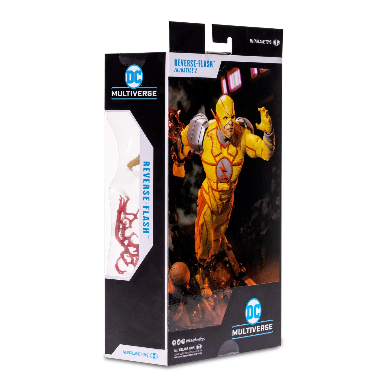 Obsessed with uncovering the secret of super-speed, a scientist from the 25th century named Professor Eobard Thawne traveled back in time to meet his idol, The Flash. However, when he learned the he was destined to become a villain and die at the hands of the Scarlett Speedster, Thawne went insane and became Reverse-Flash. The Reverse-Flash harnesses the power of the Negative Speed Force, which grants him many of the same superpowers as the Flash, but also allows him to travel through time. He often uses this ability to travel though time to continuously wreak havoc on the timestream and torment The Flash. Incredibly detailed 7″ scale figure based off the DC Multiverse. Designed with Ultra Articulation with up to 22 moving parts for full range of posing and play. Reverse Flash is featured in his outfit from the Video Game Injustice 2. Reverse Flash comes with 3 attachable speed Force Lightning Pieces and a base. Included collectible art card with figure photography on the front, and character biography on the back. Collect all McFarlane Toys DC Multiverse Figures.
