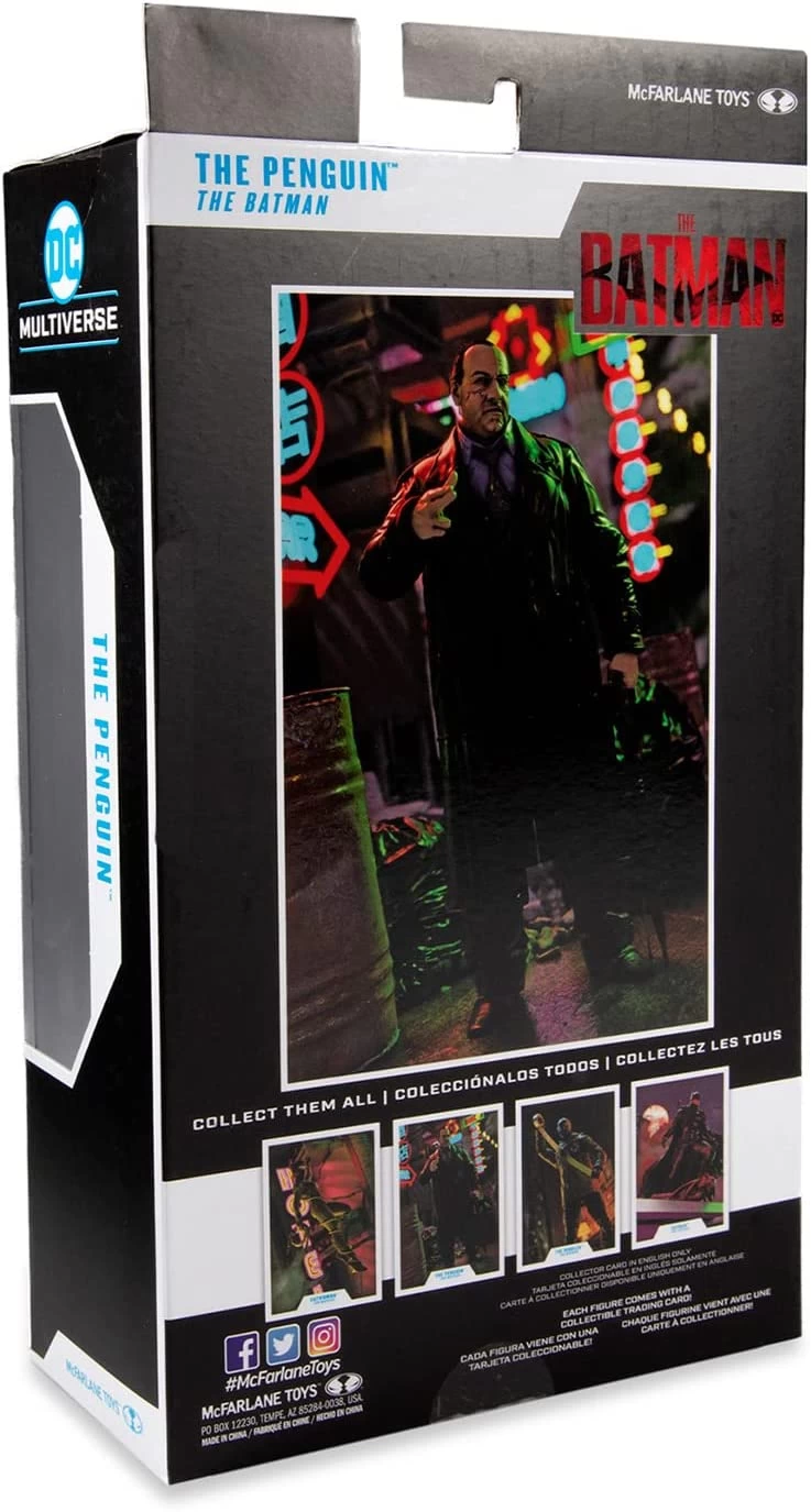 What secrets are locked away in The Iceberg Lounge? From The Batman movie comes an incredibly detailed 7-inch scale figure of Penguin! This DC The Batman Movie The Penguin 7-Inch Scale Action Figure features up to 22 points of articulation for a full range of posing and play. The Penguin comes with alternate hands and a display base. Also included is a collectible art card with figure photography on the front, and character biography on the back