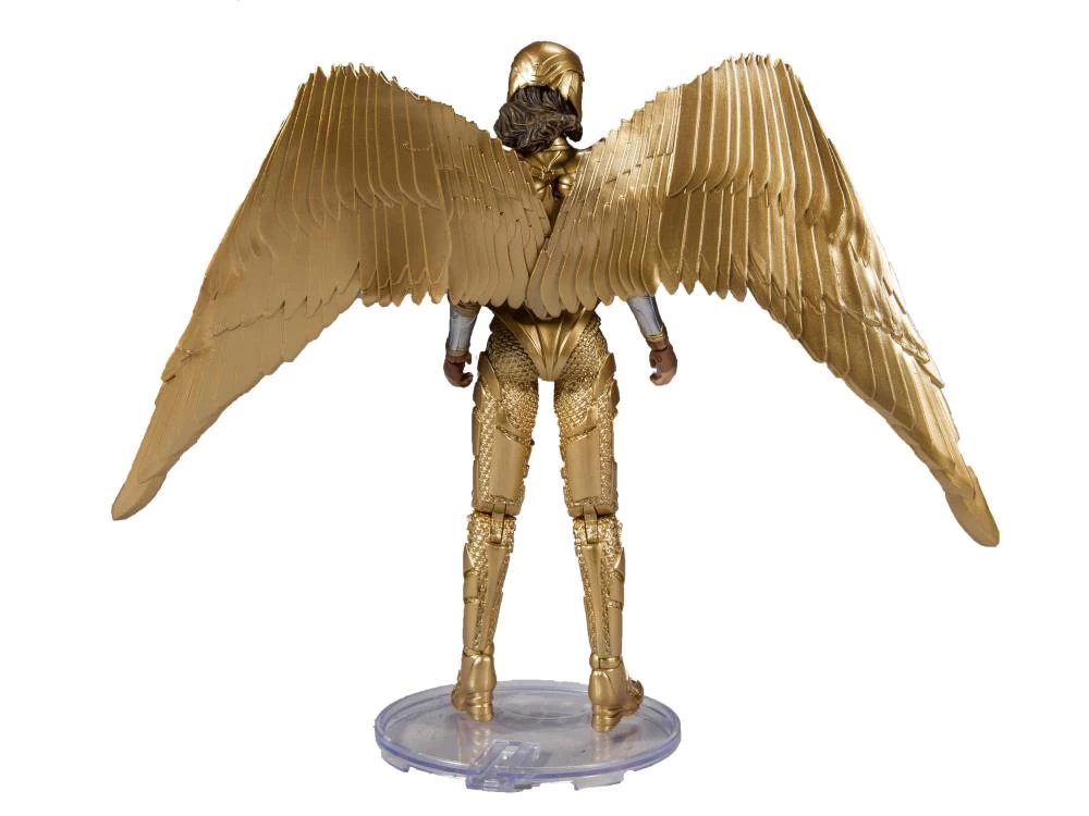 Wonder Woman accessories include detachable wings, flight stand, and base