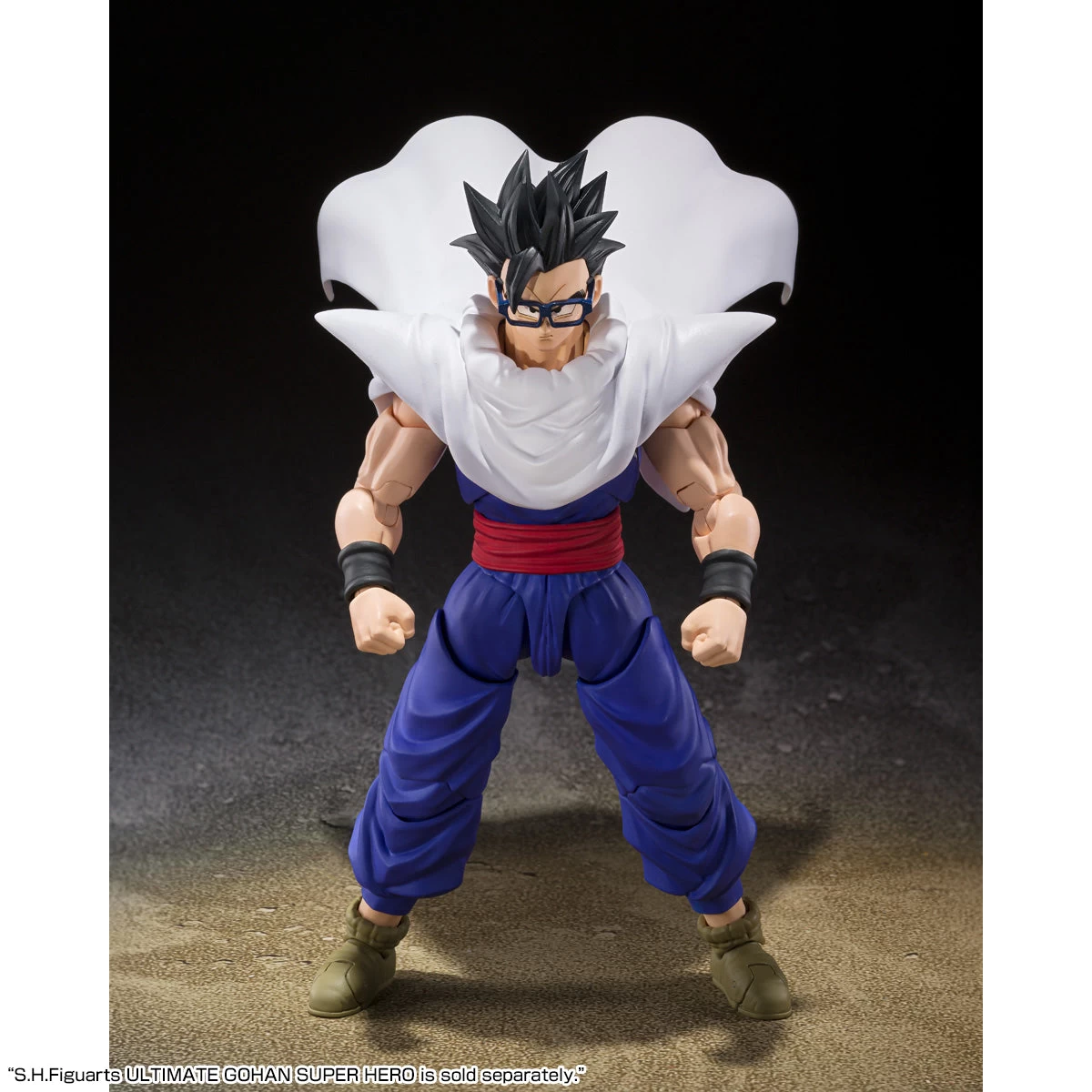 | Gamma 2 from “Dragon Ball Super: SUPER HERO” is now available from S.H.Figuarts! Reproduce the impressive poses from the trailer, for example, by using the exchangeable parts for facial expressions, hands, etc., included as accessories! The gun by the hip is kept in the holster using the exchangeable parts. You can also enjoy the two ways the gun can be held with the exchangeable hand parts! And have even more fun reproducing scenes from the movie with the included head part with glasses on and the cloak for use with S.H.Figuarts Ultimate Gohan Super Hero (sold separately)! |
