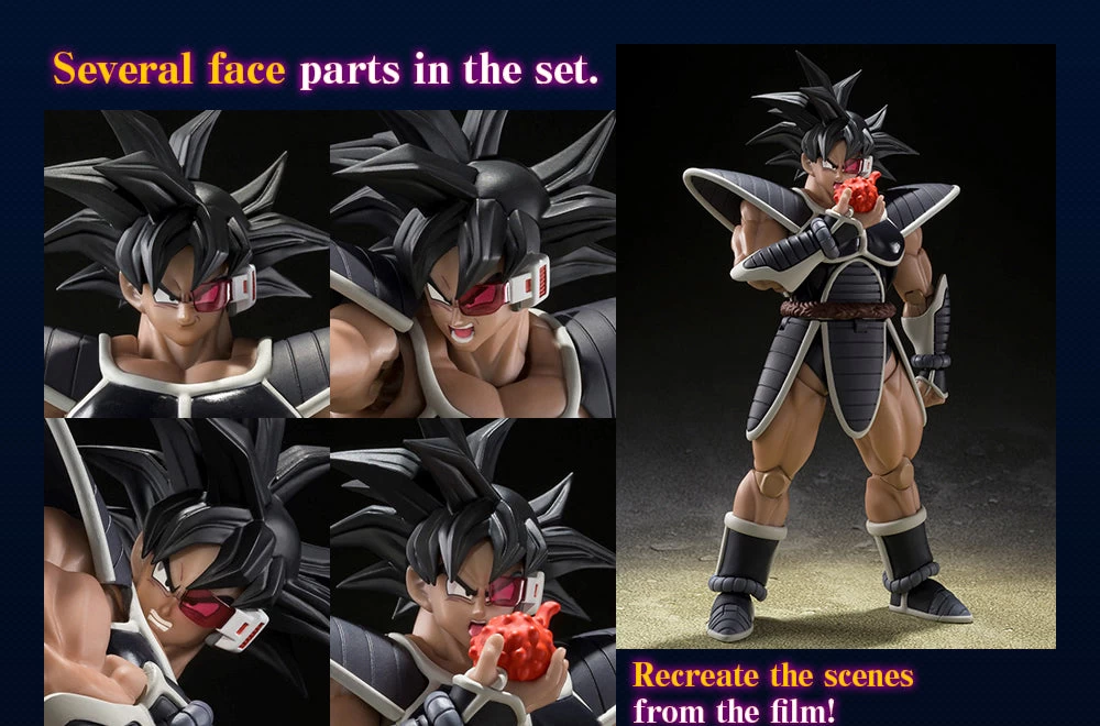 | Tulece, a surviving Saiyan that appears in the movie, “Tree of Might” is now available from S.H.Figuarts! Included are facial expression parts, with a shouting face and clenched face in addition to a face with the tongue sticking out! |