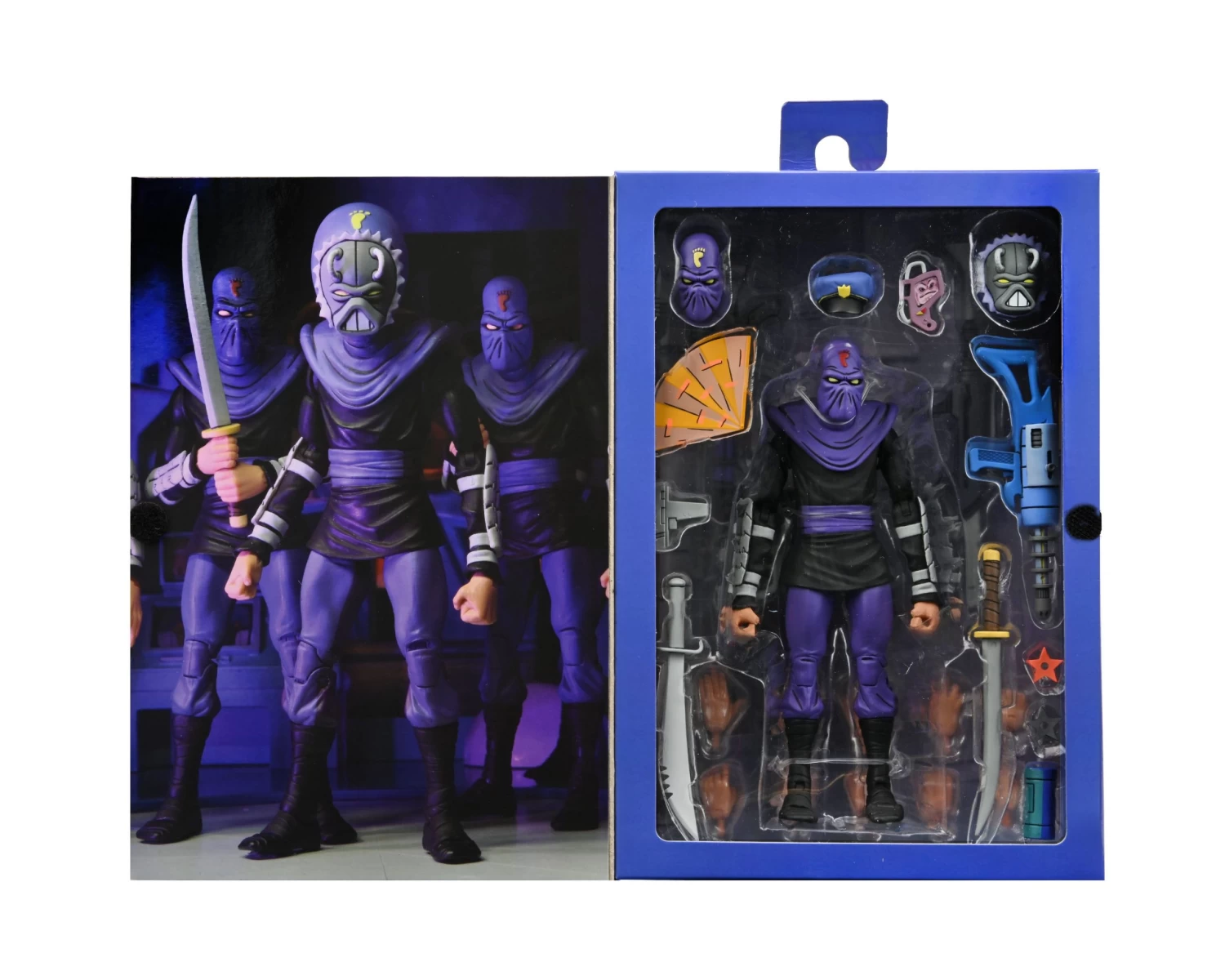 Shredder needs reinforcements to combat the Turtles! Enter the Deluxe Foot Soldier. Loaded with an arsenal of accessories to allocate among his comrades, this Foot Soldier comes with throwing stars, an ooze canister, 5 blasters, and 3 melee weapons, including a new sword and staff. Also packed in this Deluxe offering are 3 interchangeable heads, a fan, a police cap, and a communicator. Comes in window box packaging.